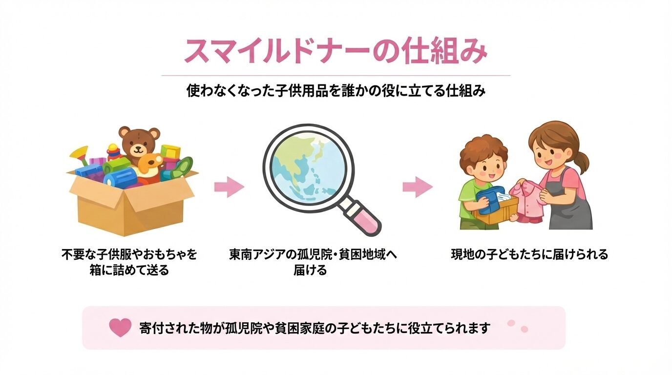 この記事では、子ども用品の寄付サービス「スマイルドナー」